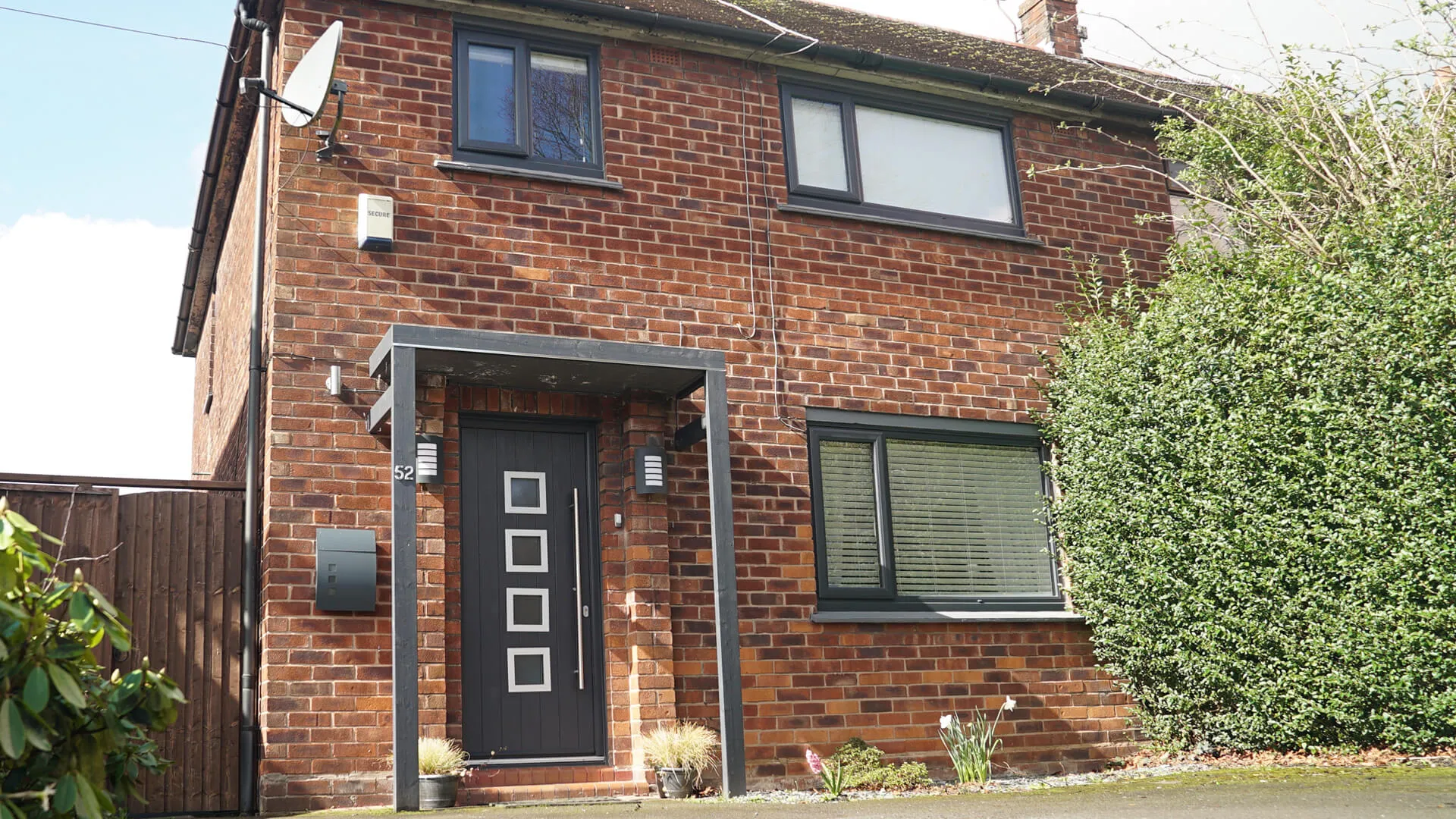 Magda was very observant and checked out other homes in her locality and further afield to find a window style that she liked. It was whilst doing this that she developed a fondness for properties with modern, grey-coloured windows and a contemporary front door. Her absolute favourite door was a design with aluminium panels framing the glass panes, complete with a chrome bar handle. It just so happened that we had an almost identical door.